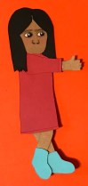 I worked for a bit over an hour to make up for yesterday’s lack of paper art work. I worked on the little girl that is standing. I made her hair, separated her legs (to make her more three dimensional), made her arm, and made a little boot. Paper art takes much longer than it looks.
