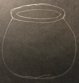 I began by drawing out my pot. I then decided what areas of the pot needed to have extra layers to have more dimension. Once I decided that, I drew them out, cut them, and attached them to the pot.