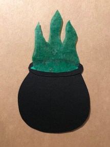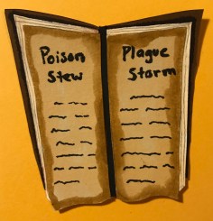 As was the case with the previous paper art creations, I already knew, ahead of time, what I wanted to make to represent something poisonous. I decided on a cauldron with poison stew and a spell book that would show exactly what it was.