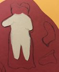 The next step was to use the body shape to create the dress. I placed it over red paper and began tracing the dress form, then the sleeves.