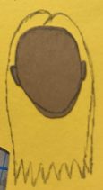 Per usual, I began by sketching out the shape of the body. I wanted the character to be a bit fuller . Once I had the body, arms and head, I cut them out and then used the body to trace out the shape of the dress.