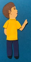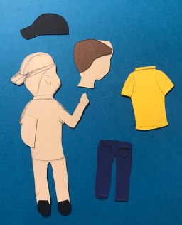 It began simply enough, I sketched out the little boy and cut him out to use him as a reference for the clothes and body parts.
