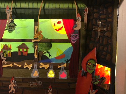 To represent my favorite moment, I created little paper people that would be the witch’s friends, along with a few more props, like scissors, a craft knife and a piece of paper with a paper person cut out.
