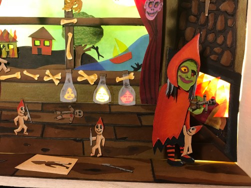 To represent my favorite moment, I created little paper people that would be the witch’s friends, along with a few more props, like scissors, a craft knife and a piece of paper with a paper person cut out.
