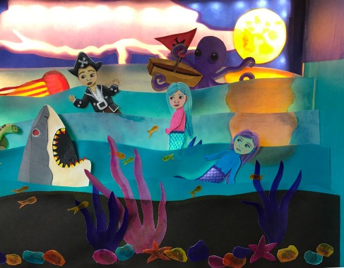Right from the start, I knew I wanted to work mostly with vellum paper to give the water and sky a transparent look. I also wanted many of the water creatures to have a glow to them, so they too would be created in vellum.