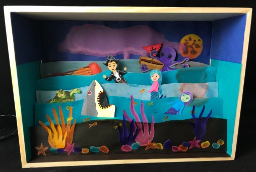 I decided to create this light box for a popular instagram challenge called #MerMay. I had just completed a lengthy challenge in April, so I did not want to get too involved like I did with the April Challenge. Therefore, I decided to pick about 10 of the prompts and create an overall light box that would encompass them all.