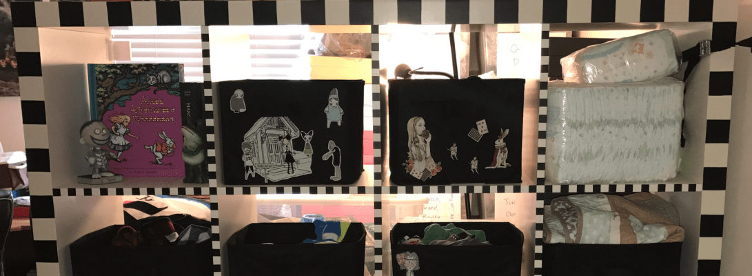 In an effort to be thrifty, my husband and I decided to use an old cube shelf he had from when he lived with his parents. His parents still had it in their home and they had no use for it, so they were more than happy to pass it on to us.